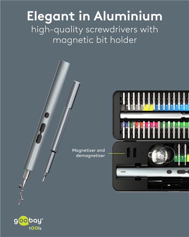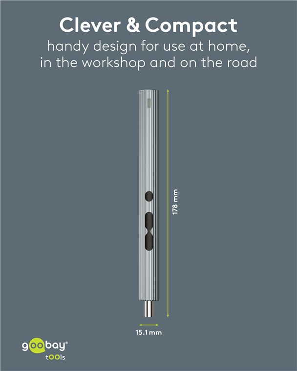 Qualità e funzionalità: Il cacciavite elettrico convince per il suo elegante design in metallo e la sua maneggevolezza. Le scanalature nell'impugnatura garantiscono un effetto antiscivolo durante la rotazione manuale del cacciavite e una distribuzione ottimale della forza. La custodia in metallo con codice colore e gli accessori completi rendono il set di cacciaviti un must-have per ogni riparatore di cellulari e campione del fai da te.