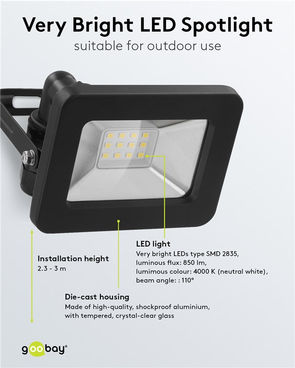 • Con un ampio angolo del fascio di 110°, il faro LED è adatto a illuminare le facciate.