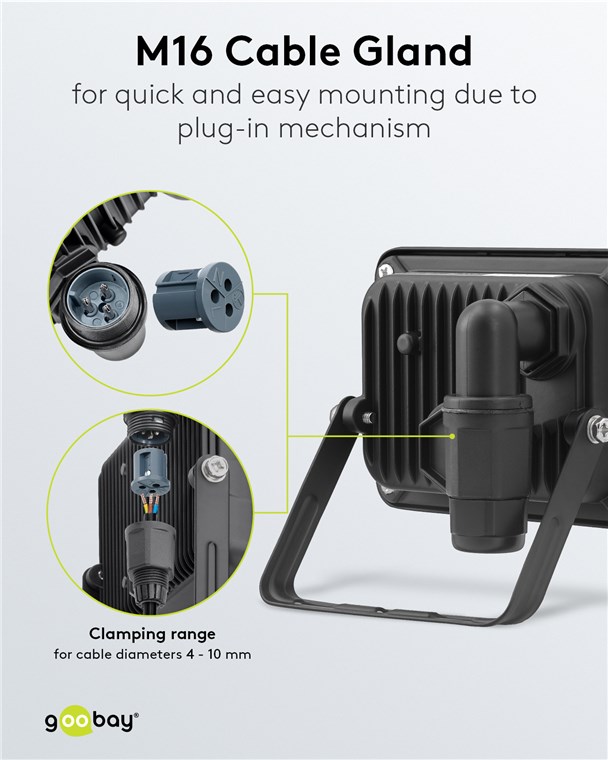 • Montaggio facile e veloce grazie al pratico pressacavo M16 con funzione plug-in per il campo di serraggio/diametro del cavo 4-10 mm