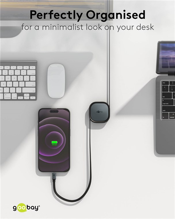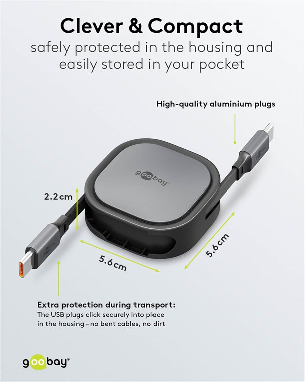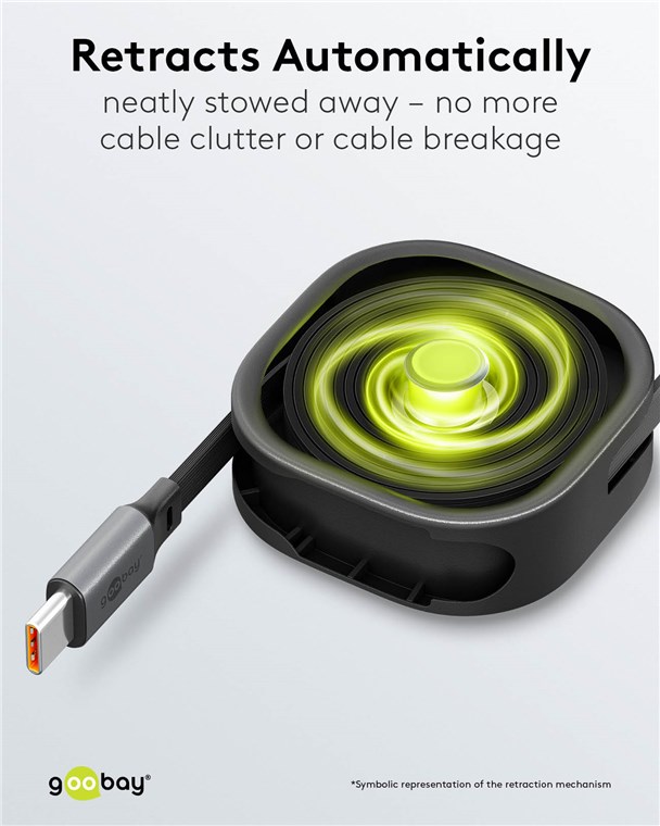 Putting the fun in function: Ręczne zwijanie kabli to już przeszłość, ponieważ zintegrowany mechanizm zwijający automatycznie chowa kabel do obudowy. Optymalnie chroniony i ultrakompaktowo zwinięty kabel ładujący jest niezastąpionym towarzyszem w podróży – koniec z łamaniem kabli i bałaganem w torbie! Pudełko z obudową jest niewiele większe od herbatnika i łatwo mieści się w każdej torbie.