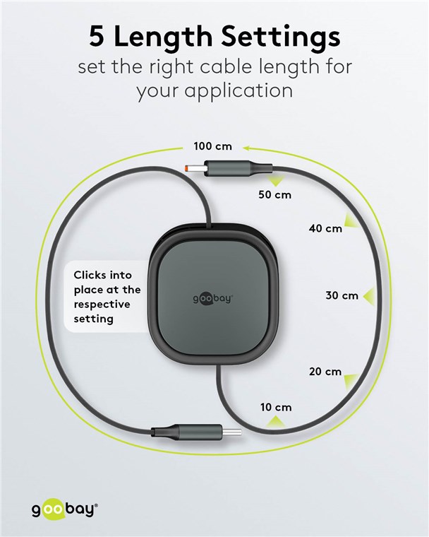 - 5-stopniowa regulacja: Kabel USB można wydłużyć do pięciu różnych długości, pociągając jednocześnie za oba końce kabla