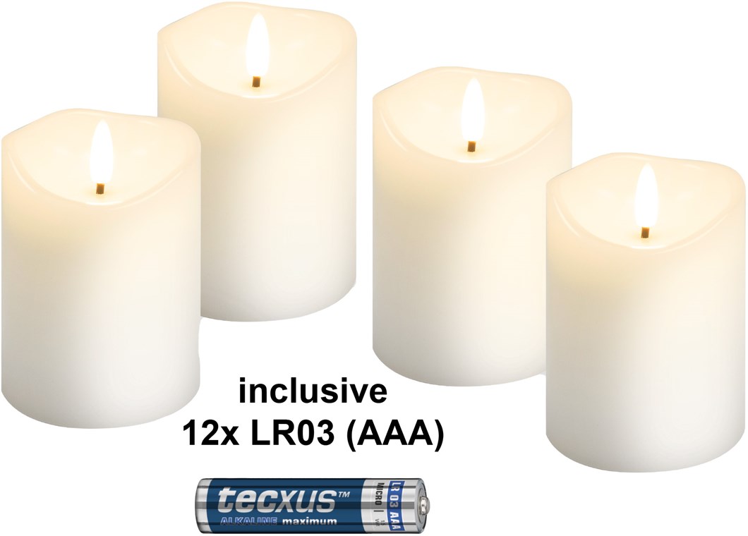Czteroczęściowy zestaw świec LED z prawdziwego wosku, biały, z 12x AAA (LR03)