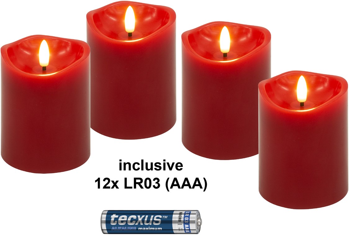 Czteroczęściowy zestaw świec LED z prawdziwego wosku, czerwony, z 12x AAA (LR03)