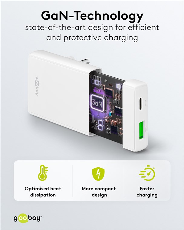 • Półprzewodniki w technologii GaN umożliwiają szybsze i bardziej wydajne ładowanie oraz lżejszą i bardziej kompaktową konstrukcję w porównaniu z tradycyjnymi ładowarkami