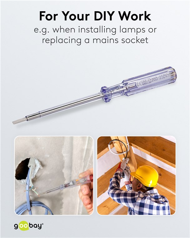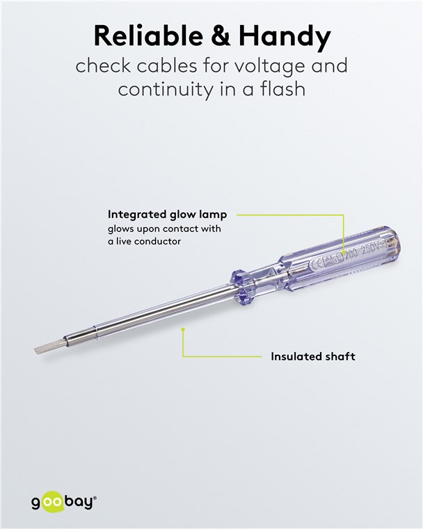 - Jednofazowy tester prądu z izolowanym trzonkiem dla prądu przemiennego od 200 V do 250 V