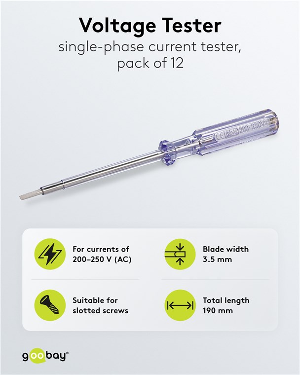 - Wymiary testera fazy, szerokość ostrza x długość trzonu: 3,5 mm x 100 mm