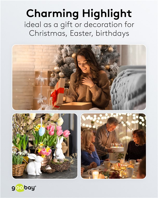 - Zintegrowany łańcuch świetlny z diodami micro LED (5 m) doskonałe uzupełnienie dekoracji na Boże Narodzenie, urodziny lub Wielkanoc.