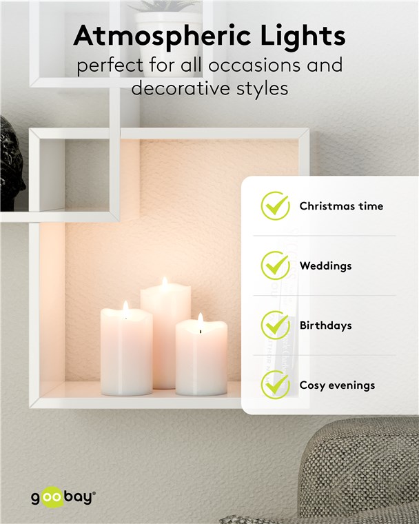 - Światła LED są bezpiecznym rozwiązaniem oświetleniowym bez zagrożenia pożarowego dla ludzi i zwierząt – odpowiednie dla wszystkich obszarów, w których prawdziwe świece są zbyt niebezpieczne lub niedozwolone