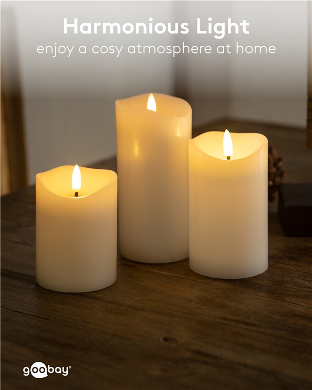 Trzyelementowy zestaw świec LED z prawdziwego wosku, biały, z 10x AAA (LR03)