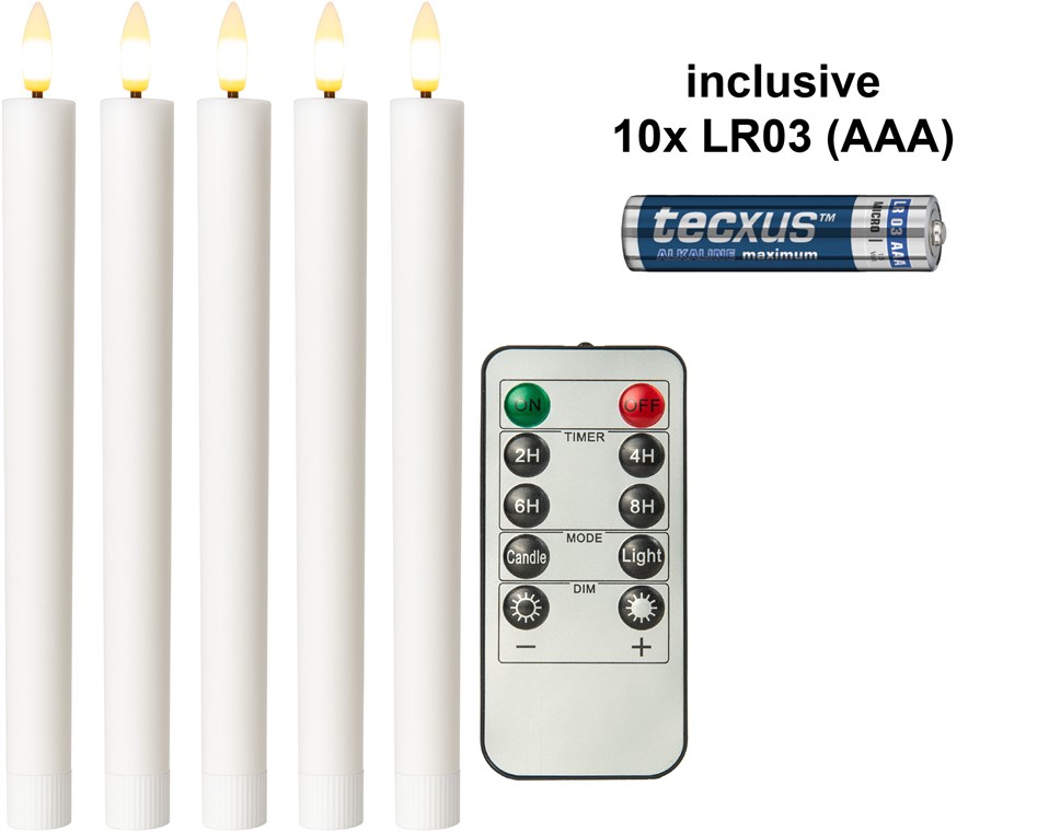 Zestaw 5 świec LED z prawdziwego wosku, biały, w komplecie z pilotem zdalnego sterowania i 10x AA (LR6)